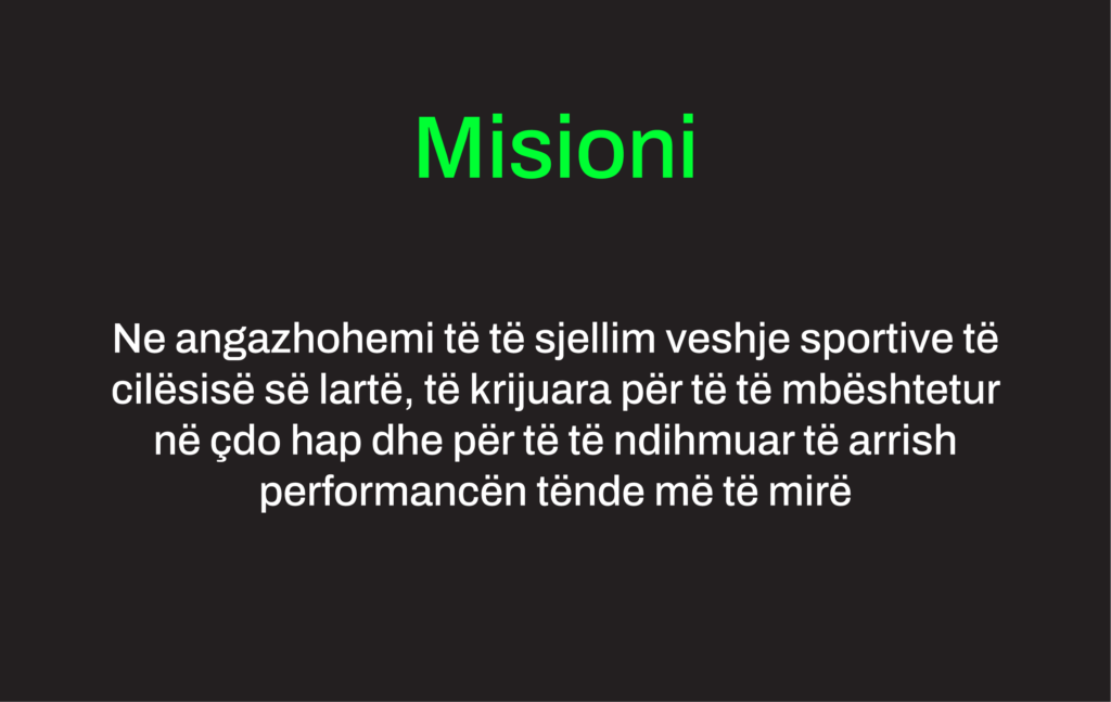 Qëndrueshmëria nuk ka të bëjë vetëm me të qenit përgjegjës mjedisor dhe social, ka të bëjë edhe me sigurimin e qëndrueshmërisë ekonomike afatgjatë të kompanisë sonë. Ne investojmë në kërkime dhe zhvillim për të krijuar veshje sportive inovative me performancë të lartë që i rezistojnë provës së kohës. Duke përqafuar praktikat e qëndrueshme të biznesit, ne përpiqemi për efikasitet, minimizojmë kostot dhe rrisim konkurrencën tonë në treg. Kjo siguron që ne të vazhdojmë të lulëzojmë si biznes duke nxitur ndryshime pozitive.